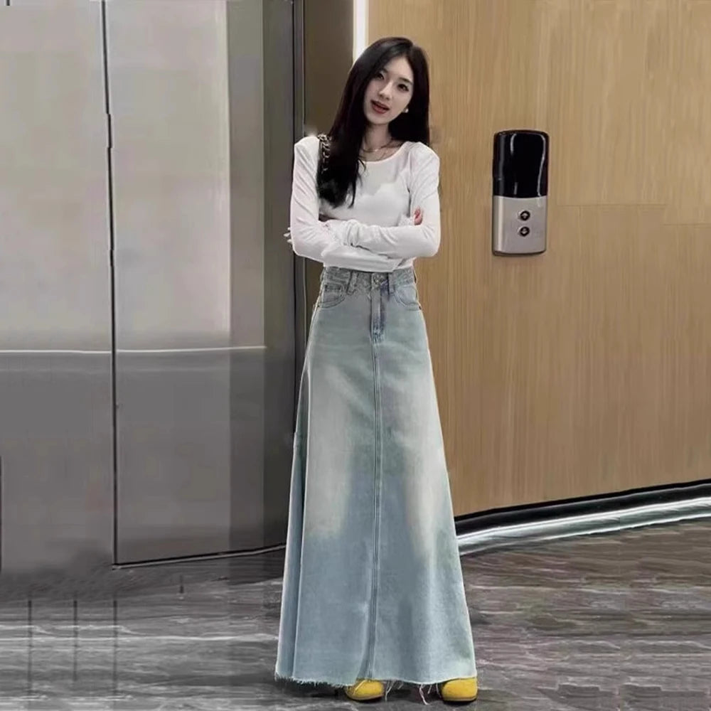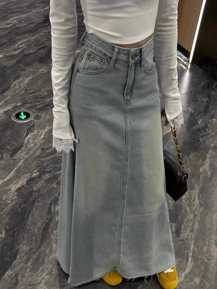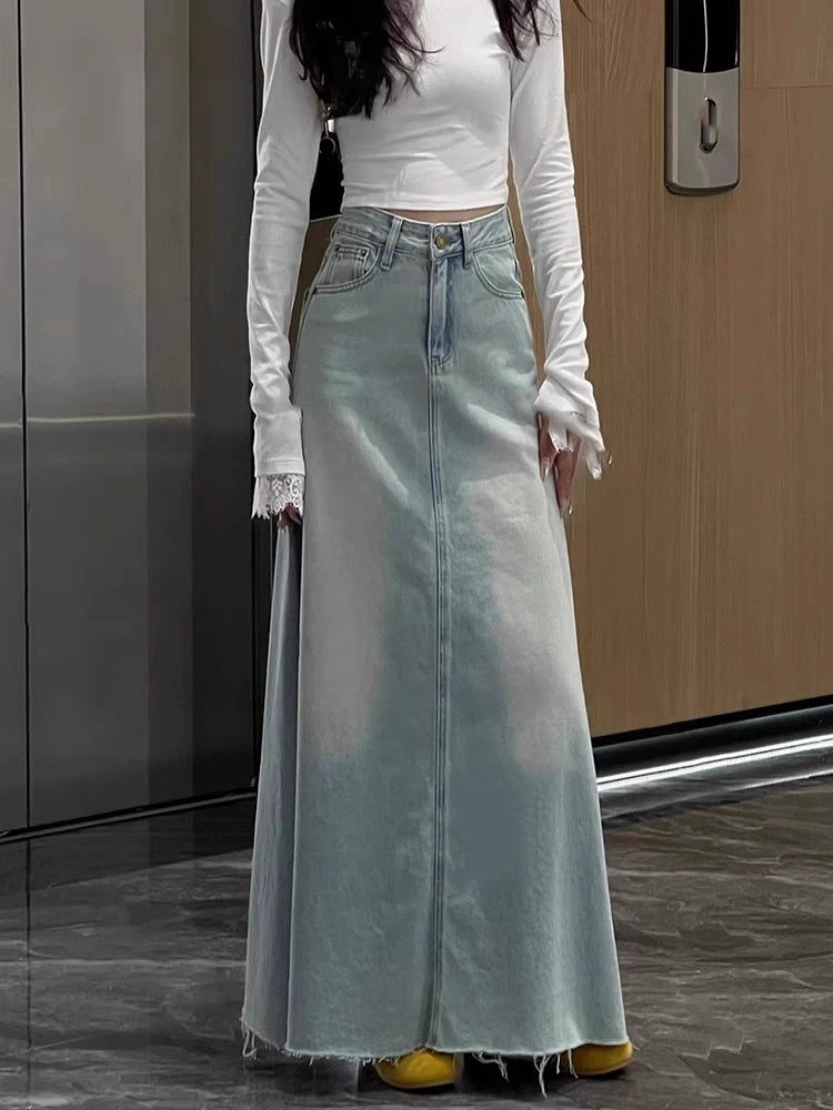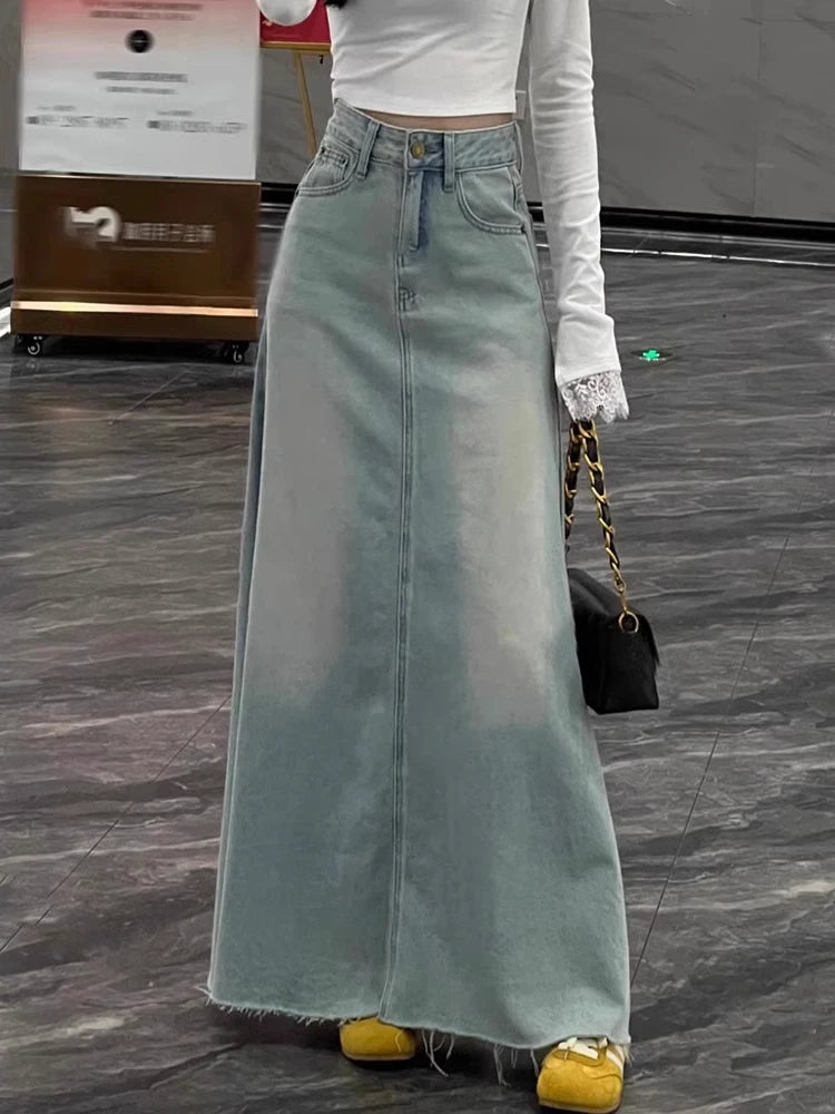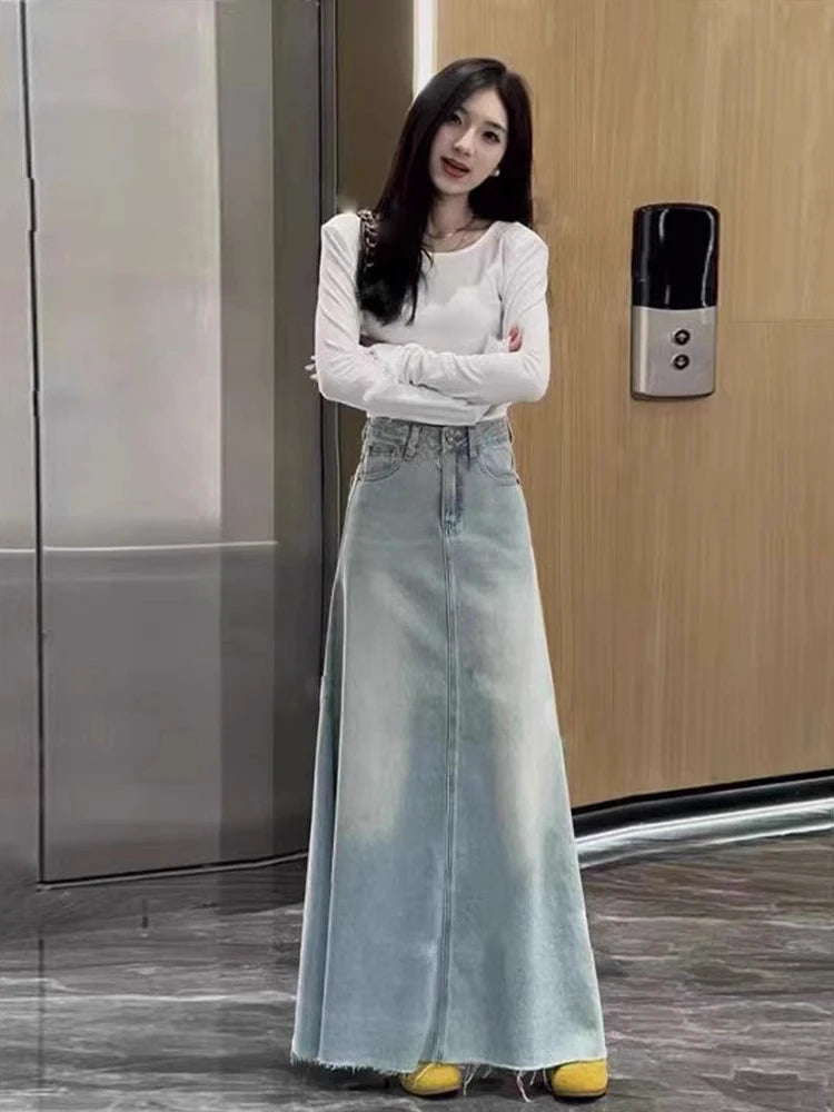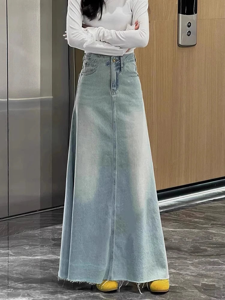 Inform when this item available High Waist A-Line Denim Midi Skirt for Women